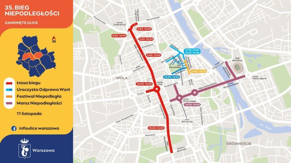 11 listopada w stolicy odbędą się uroczystości, koncerty i marsze upamiętniające odzyskanie przez Polskę niepodległości. W związku z nadchodzącymi obchodami i wieloma wydarzeniami wprowadzone zostaną zmiany w ruchu i kursowaniu komunikacji miejskiej.