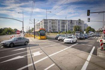 Zasadnicze prace drogowe wzdłuż trasy zostały zakończone – jezdnie mają docelowy przekrój, kończą się roboty przy chodnikach i drogach rowerowych, trwa nasadzanie zieleni. Przygotowywane jest uruchomienie wspólnych torowisk autobusowo-tramwajowych (TTA). Trwają prace nad organizacją ruchu i programami sygnalizacji świetlnej.