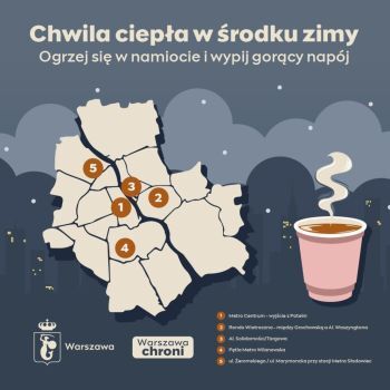 Państwowa Straż Pożarna wystawi pięć ogrzewanych namiotów, a dzięki współpracy z MPWiK mieszkańcy będą mogli napić się tam ciepłej herbaty i kawy. Zarząd Transportu Miejskiego uruchomi także dwa autobusy grzewcze, które będą dostępne w miejscach o największym natężeniu ruchu.Podjąłem decyzję o tym, żeby we współpracy ze strażą pożarną w kilku miejscach Warszawy, w największych węzłach przesiadkowych, postawić kilka ogrzewanych namiotów z gorącymi napojami, żeby Warszawiacy mogli się tam ogrzać – mówił Rafał Trzaskowski. Jeżeli będzie taka potrzeba, to tych punktów będzie więcej, chcemy zadbać o komfort mieszkanek i mieszkańców – dodał prezydent.