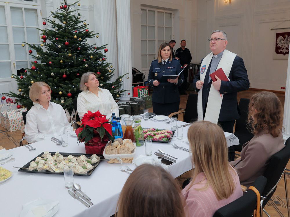 Białą Salę Komendy Stołecznej Policji wypełniły w tym roku przede wszystkim pamięć i obecność. Komendant Stołeczny Policji zaprosił wdowy, sieroty i najbliższych funkcjonariuszy, którzy odeszli na służbie, aby wspólnie podzielić się opłatkiem, wysłuchać kolęd i otrzymać drobne upominki.