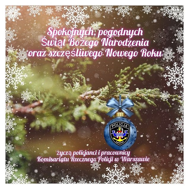 Policjanci i pracownicy Komisariatu Rzecznego Policji w Warszawie życzą spokojnych, pogodnych świąt Bożego Narodzenia oraz pomyślności w Nowym Roku.