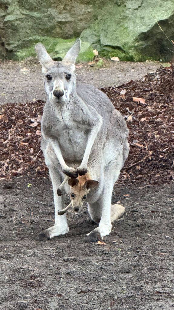 W tym roku w Warszawskim ZOO przyszło na świat aż pięć kangurów rudych: trzy samce, jedna samica oraz jeden najmłodszy maluszek, którego płeć wciąż pozostaje tajemnicą, ponieważ na razie przebywa wyłącznie w torbie matki. To duży sukces hodowlany i powód do dumy opiekunów zwierząt.