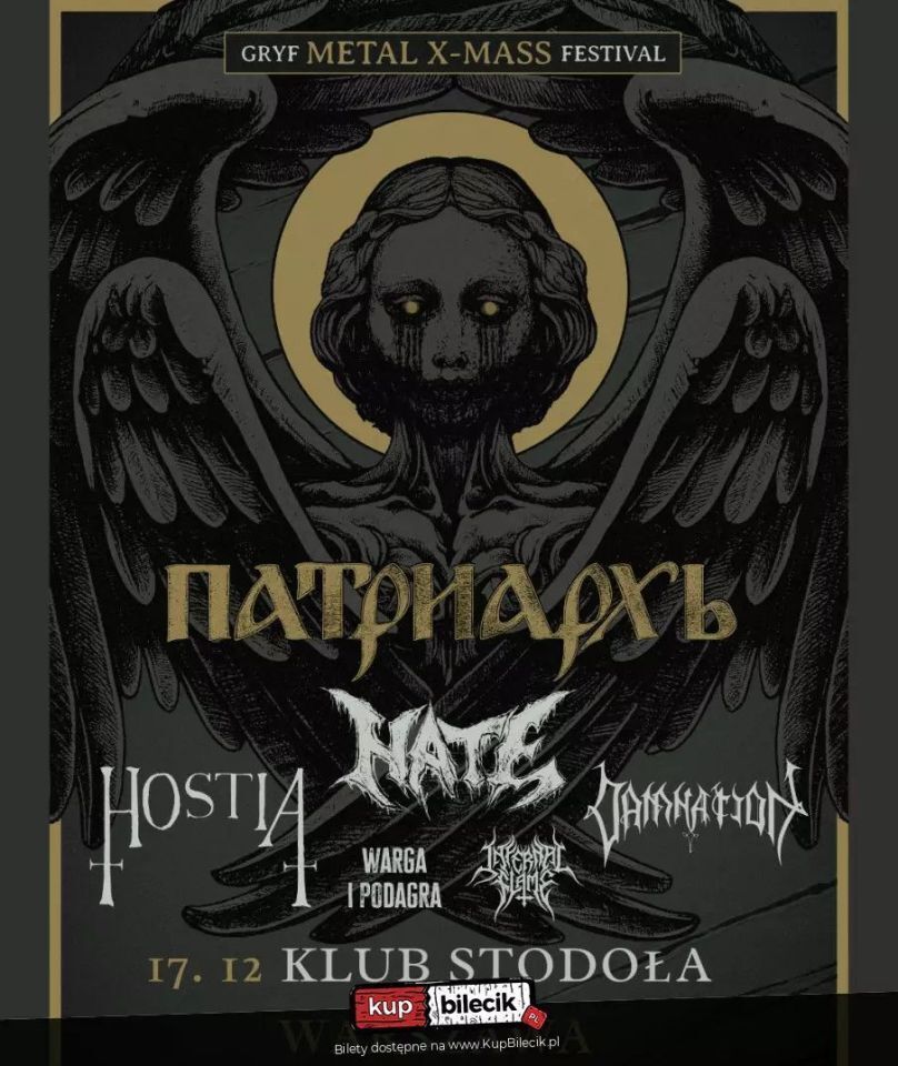 Gryf Metal X-Mass Festival, to wydarzenie które zapadnie w pamięci wielu fanów na długo. Bedzie to wspaniałe widowisko, pełne cudownych dźwięków metalu. Koncert na którym wystąpią absolutne gwiazdy naszej rodzimej sceny ciężkiego grania. Zespoły takie jak Patriarkh, Hate, Hostia, czy Damnation to gwarancja dobrej zabawy.