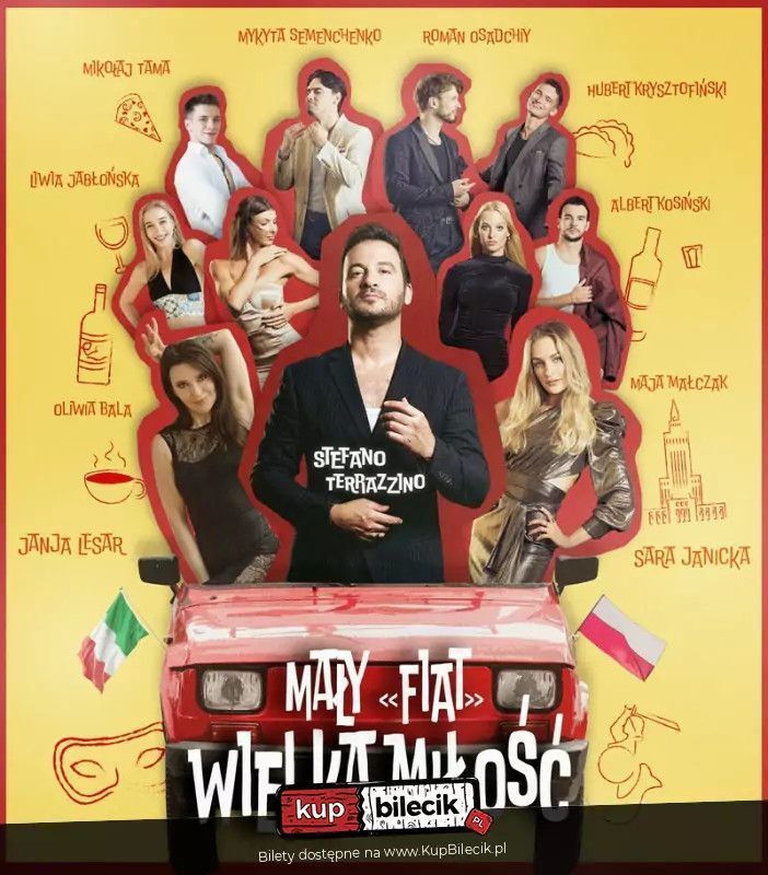 "Mały Fiat Wielka Miłość" to pełne pasji, radości, ale i zawirowań widowisko taneczno-wokalne, które zabierze widzów w podróż do serca neapolitańskiej rodziny żyjącej w Polsce. W lekkiej, pełnej humoru formie historia o miłości, tradycji i rodzinnych więziach zostaje opowiedziana przez taniec oraz śpiew na żywo, które niosą ją z niezwykłą energią. W programie usłyszymy włoskie utwory, takie jak "Piccola e Fragile", "Tu Vo Fa L"Americano", "L"Italiano", a także piosenki w języku polskim, które dodadzą wyjątkowego charakteru temu spektaklowi.