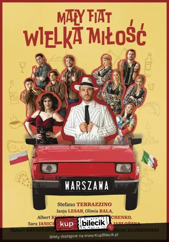"Mały Fiat Wielka Miłość" to pełne pasji, radości, ale i zawirowań widowisko taneczno-wokalne, które zabierze widzów w podróż do serca neapolitańskiej rodziny żyjącej w Polsce. W lekkiej, pełnej humoru formie historia o miłości, tradycji i rodzinnych więziach zostaje opowiedziana przez taniec oraz śpiew na żywo, które niosą ją z niezwykłą energią. W programie usłyszymy włoskie utwory, takie jak "Piccola e Fragile", "Tu Vo Fa L"Americano", "L"Italiano", a także piosenki w języku polskim, które dodadzą wyjątkowego charakteru temu spektaklowi.