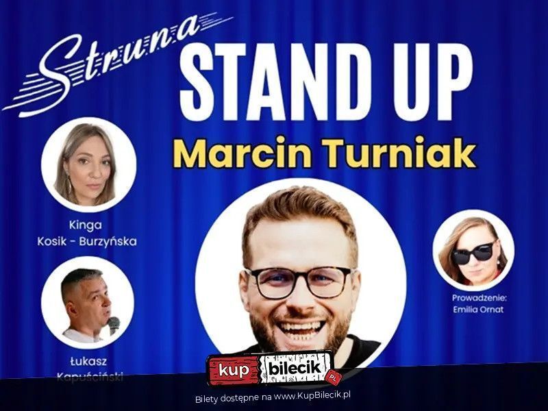 Marcin Turniak mistrz codziennych żartów, improwizacji i zaskakujących historii. młody gniewny z YouTube (2 materiały na koncie) i twórca programu "Bandyta z pluszowym Misiem". Marcin ma za sobą supporty dla Marleny Myszy, Patryka Gosińskiego i Ryszarda Mazura.