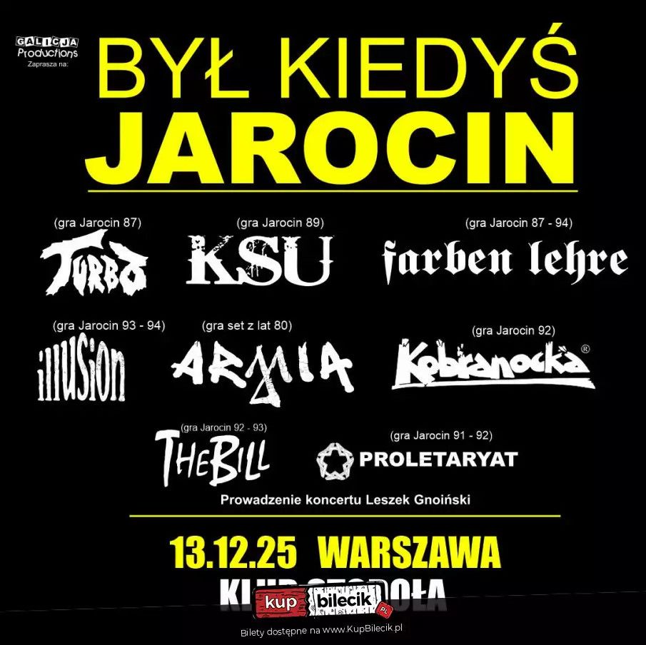 Tych zespołów nie trzeba nikomu przedstawiać - ich piosenki zna każdy, kto dorastał w latach 80. i 90. KSU, Farben Lehre, Proletaryat, Turbo, The Bill, Armia, Kobranocka, Illusion spotkają się 13 grudnia w warszawskiej Stodole, żeby wspólnie przywołać klimat festiwalu w Jarocinie. Zespoły zaprezentują swoje najlepsze sety Jarocińskie.