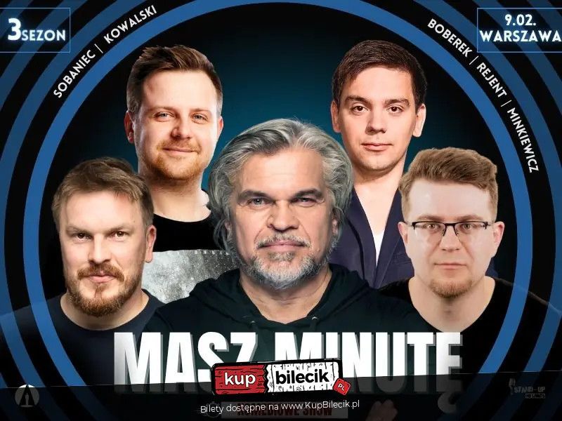 bilety: "Masz minutę" - Nowy Format Zapraszamy na wartkie komediowe show z elementami stand-upu, roastu i improwizacji. Dziesiątki komików na scenie, emocje, interakcje i przy okazji bardzo precyzyjny przegląd tego, co w stand-upie piszczy. Szykuje się parę znanych nazwisk, ale też przede wszystkim cała masa nowych. Tak nowych, że jednym z nich możesz być ty! Wpadnij współtworzyć nieznany w Polsce format komediowy. Masz minutę! Tylko tyle i aż tyle. W panelu zasiądą: Adam Sobaniec Łukasz Kowalski Mieszko Minkiewicz Sebastian Rejent Gość specjalny: Jarosław Boberek I do zobaczenia! ______________________ *Podczas występu obowiązuje zakaz nagrywania audio oraz video. *Wydarzenie może być rejestrowane - biorąc udział w wydarzeniu zgadzasz się na udostępnianie wizerunku przez spółkę Agencja Stand-up Comedy oraz podmioty współpracujące. Bilety do nabycia na: KupBilecik.plMasz Minutę - Format Komediowy artyści: Adam Sobaniec, Łukasz Kowalski, Mieszko MinkiewiczZapraszamy na wartkie komediowe show z elementami stand-upu, roastu i improwizacji. Dziesiątki komików na scenie, emocje, interakcje i przy okazji bardzo precyzyjny przegląd tego, co w stand-upie piszczy. Szykuje się parę znanych nazwisk, ale też przede wszystkim cała masa nowych. Tak nowych, że jednym z nich możesz być ty! Bilety do nabycia na: KupBilecik.pl |