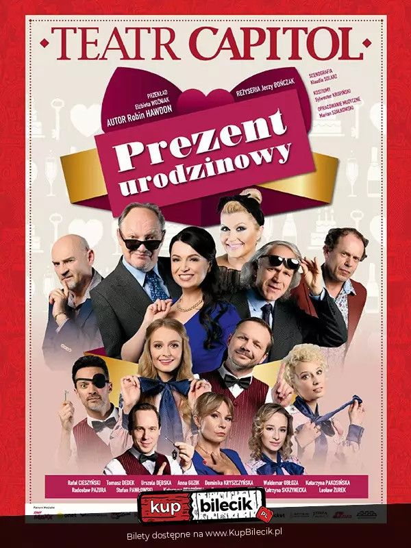 bilety: Ta obłędnie śmieszna komedia niezaplanowanych sytuacji, mogłaby zdarzyć się naprawdę, gdy fantazja zaczyna wodzić bohaterów na pokuszenie lub... wodzić ich za nos, ku uciesze wkręconego w tę szałową drakę Widza! Drogi Widzu - nie spuszczaj ich z oka i pozostań czujny w obu pokojach naraz do ostatniej minuty tego powalająco zabawnego zamieszania. Każdy komiczny niuans tej nakręcającej się mieszanki wybuchowej zagrany jest z niezwykłą precyzją i w szalonym tempie przez gwiazdorską obsadę aktorów znanych jako mistrzów humoru, pod czujną wodzą reżyserską Jerzego Bończaka. Premiera: Październik 2022 Prezent urodzinowy - Teatr Capitol artyści: Reżyseria: Jerzy BończakDwa bliźniacze apartamenty luksusowego hotelu, sąsiadujące przez ścianę jak w lustrzanym odbiciu, mogą pomieścić nawet najbardziej ekscentryczny zestaw Gości: skłócone małżeństwo w separacji, włoskiego kelnera, który Włochem jest lub bywa, urzędnika państwowego czekającego na skandaliczny Prezent Urodzinowy, parę nieśmiałych samotnych serc umówionych przez biuro matrymonialne, egzotyczną Mimi - profesjonalistkę z agencji towarzyskiej, ekscentrycznego psychiatrę nieradzącego sobie z własnymi emocjami, atrakcyjną i elegancką bizneswoman, dziewiczą miłośniczkę romantycznej literatury nieopatrznie przeginającą z alkoholem i ... Długo by jeszcze wyliczać możliwości konfiguracji personalnych, wymykających się spod kontroli - choć aktorów na scenie wciąż jest jedynie pięcioro! Jak to możliwe Gdy ukryte drzwi między pokojami okazują się niedomknięte, każdy może stać się kimś, kim wolałby być lub bardzo nie chciałby być... Bilety do nabycia na: KupBilecik.pl |