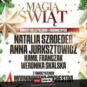 | Natalia Szroeder, Anna Jurksztowicz, Kamil Franczak, Weronika Skalska, MorningStar Orchestradodano 2025-09-17 11:13:47 Zapraszamy na wyjątkowy wieczór pełen ciepła, emocji i świątecznej atmosfery! Magia Świąt to nastrojowy koncert, który połączy ukochane polskie kolędy - takie jak "Cicha noc", "Lulajże Jezuniu", "Przybieżeli do Betlejem" - z najbardziej znanymi zagranicznymi przebojami bożonarodzeniowymi, w tym "Let It Snow", "All I Want for Christmas Is You" czy "Last Christmas". Finałem wieczoru będzie wspólne wykonanie pełnego energii "Jingle Bell Rock" - nie zabraknie wzruszeń, uśmiechu i magicznej atmosfery, która zostanie z nami na długo po ostatnim dźwięku. Wykonawcy: Magia Świąt to koncert, który łączy to, co w Bożym Narodzeniu najpiękniejsze - wspólne przeżywanie, muzykę pełną ciepła i profesjonalne wykonania najwyższej klasy. Zanurz się w świątecznej aurze i pozwól sobie na chwilę wzruszenia i radości. Niech ten koncert będzie Twoim muzycznym prezentem na Święta! Bilety do nabycia na: KupBilecik.plMagia Świąt - Koncert Kolęd Polskich i Zagranicznych artyści: Natalia Szroeder, Anna Jurksztowicz, Kamil Franczak, Weronika Skalska, MorningStar OrchestraZapraszamy na wyjątkowy wieczór pełen ciepła, emocji i świątecznej atmosfery! Magia Świąt to nastrojowy koncert, który połączy ukochane polskie kolędy - takie jak "Cicha noc”, "Lulajże Jezuniu”, "Przybieżeli do Betlejem” - z najbardziej znanymi zagranicznymi przebojami bożonarodzeniowymi, w tym "Let It Snow”, "All I Want for Christmas Is You” czy "Last Christmas”. Finałem wieczoru będzie wspólne wykonanie pełnego energii "Jingle Bell Rock” - nie zabraknie wzruszeń, uśmiechu i magicznej atmosfery, która zostanie z nami na długo po ostatnim dźwięku. Bilety do nabycia na: KupBilecik.pl |