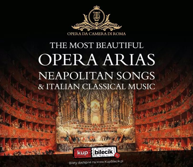 bilety: "Najpiękniejsze włoskie arie operowe i pieśni neapolitańskie" to flagowy koncert zespołu Opera da Camera di Roma, który od ponad dekady zachwyca publiczność we Włoszech i poza jej granicami. Premiera tego wyjątkowego wydarzenia odbyła się w 2014 roku w jednej z najpiękniejszych świątyń Rzymu - Basilica Santa Maria in Cosmedin. Od tego czasu koncert pozostaje w stałym repertuarze Opery i został okrzyknięty jednym z najlepszych koncertów operowych w Rzymie ostatniej dekady. W repertuarze koncertu znajdują się największe perły włoskiej opery i muzyki neapolitańskiej - niezapomniane arie i pieśni, które na przestrzeni lat stały się symbolem włoskiego temperamentu, pasji i romantyzmu. Usłyszą Państwo utwory takich mistrzów jak: Giacomo Puccini, Giuseppe Verdi, Gaetano Donizetti, Gioachino Rossini, a także legendarne pieśni neapolitańskie - w tym O sole mio, Funiculì Funiculà, Torna a Surriento i wiele innych. Na scenie wystąpią znakomici soliści Opera da Camera di Roma - artyści rzymskich scen operowych, których kunszt wokalny i muzykalność od lat zachwycają publiczność w całej Europie przy akompaniamencie fortepianu. Zapraszamy Państwa na niezapomniany wieczór pełen emocji, pasji i piękna - w duchu włoskiej tradycji muzycznej. "Najpiękniejsze włoskie arie operowe i pieśni neapolitańskie" to koncert, który przeniesie Państwa wprost do serca Rzymu, gdzie muzyka, miłość i sztuka tworzą nierozerwalną całość. Bilety do nabycia na: KupBilecik.plNajpiękniejsze Włoskie Arie Operowe i Pieśni Neapolitańskie artyści: Różni artyści„Najpiękniejsze włoskie arie operowe i pieśni neapolitańskie” to flagowy koncert zespołu Opera da Camera di Roma, który od ponad dekady zachwyca publiczność we Włoszech i poza jej granicami. Premiera tego wyjątkowego wydarzenia odbyła się w 2014 roku w jednej z najpiękniejszych świątyń Rzymu – Basilica Santa Maria in Cosmedin. Od tego czasu koncert pozostaje w stałym repertuarze Opery i został okrzyknięty jednym z najlepszych koncertów operowych w Rzymie ostatniej dekady. Bilety do nabycia na: KupBilecik.pl |