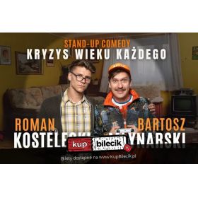 bilety: Stand-up Trasa "Kryzys wieku każdego". Na scenie: Osoby, które będą przeszkadzać podczas wydarzenia zostaną wyproszone bez zwrotu pieniędzy za bilet. Bilety do nabycia na: KupBilecik.plStand-up Trasa "Kryzys wieku każdego": Roman Kostelecki i Bartosz Młynarski artyści: Roman Kostelecki, Bartosz MłynarskiRoman Kostelecki (27 lat) – niby młody, a już zmęczony życiem. Wciąż pyta: „czy to już, czy jeszcze nie”. Bartosz Młynarski (42 lata) – mówi, że ma kryzys wieku średniego… ale to już trzeci z kolei, więc chyba po prostu lubi, bo częściej się uśmiecha. Dwóch typów, dwa pokolenia, jeden wniosek: kryzys to nie etap – to styl życia. Przyjdź się pośmiać, zanim wpadniesz w swój następny! Bilety do nabycia na: KupBilecik.pl |