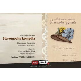 bilety: Miłość ma niejedno imię i będziecie mogli się o tym Państwo przekonać podczas jednego teatralnego wieczoru w Teatrze Parabuch. "Świeczka zgasła" - Dwoje podróżujących dyliżansem, wskutek nieprzewidzianej katastrofy, spędza ze sobą czas pozwalający odkryć zaskakującą siłę uczucia. Reżyseria: Artur Jasiński "Staromodna komedia" to romantyczna historia prowadząca nas przez meandry miłości do, jak to w komedii, szczęśliwego zakończenia. Teatr Parabuch: Staromodna Komedia artyści: Teatr Parabuch"Staromodna komedia" to romantyczna historia prowadząca nas przez meandry miłości do, jak to w komedii, szczęśliwego zakończenia. Spektakl nagrodzony w tym roku na 37 festiwalu ŁUPTA w Łodzi, gdzie nasi wspaniali aktorzy Katarzyna Jaworska i Jarosław Ostrowski otrzymali nagrodę aktorską za "dojrzałą obecność sceniczną, a jednocześnie filigranowo skonstruowaną relację między postaciami". Bilety do nabycia na: KupBilecik.pl |