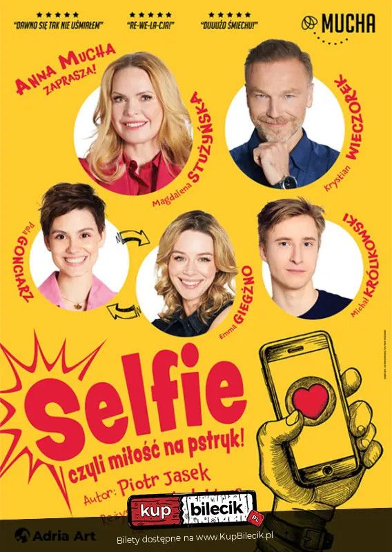 bilety: Co może wyniknąć z zetknięcia się dwóch sąsiadujących mieszkańców wielkiego blokowiska, opanowanych kryzysem samotności? W jednym mieszka Brygida - bojowo nastawiona singielka z córką, a w drugim Gerard - samotny ojciec rozczarowany kobietami. Oboje pielęgnują stereotypy, dopóki sprawy sercowe ich dorosłych dzieci nie każą wyjść z okopów i stanąć twarzą w twarz z własnymi uprzedzeniami. Julia - trzydziestoletnia córka Brygidy - ma biblioteczkę książek zamiast Facebooka i jeszcze nigdy nie zrobiła sobie selfie. Jej dotychczasowe próby randkowania spaliły na panewce, pomimo wszelkich starań jej mamy. Podobnie Gerard, przekonany, że jego syn zasługuje na prawdziwe uczucie, próbuje wypchnąć go na randkowy rynek, zanim młody zupełnie pogrąży się w rutynie wielkomiejskiego blokowiska. Kiedy ojcowska troska Gerarda krzyżuje się z matczyną determinacją Brygidy, sieć drobnych, internetowych nieporozumień wciąga oboje rodziców i ich dzieci w komiczną spiralę, w której każdy like i każda fotka prowadzą do coraz większych nieporozumień. "Selfie" to pełna zwrotów akcji komedia o tym, jak łatwo wpaść w pułapki własnych uprzedzeń i jak trudno z nich wyjść bez odrobiny śmiechu. Jeśli chcesz zobaczyć, co się dzieje, gdy świat randek online zderza się ze starym, dobrym blokowiskiem - zarezerwuj bilety, weź przyjaciół i przekonaj się, że nawet najbardziej zapiekłe serca mogą się wzajemnie odnaleźć. Selfie, czyli miłość na pstryk! artyści: Magdalena Stużyńska, Krystian Wieczorek, Pola Gonciarz/ Emma Giegżno, Michał KrólikowskiCo może wyniknąć z zetknięcia się dwóch sąsiadujących mieszkańców wielkiego blokowiska, opanowanych kryzysem samotności W jednym mieszka Brygida - bojowo nastawiona singielka z córką, a w drugim Gerard - samotny ojciec rozczarowany kobietami. Oboje pielęgnują stereotypy, dopóki sprawy sercowe ich dorosłych dzieci nie każą wyjść z okopów i stanąć twarzą w twarz z własnymi uprzedzeniami. Julia - trzydziestoletnia córka Brygidy - ma biblioteczkę książek zamiast Facebooka i jeszcze nigdy nie zrobiła sobie selfie. Jej dotychczasowe próby randkowania spaliły na panewce, pomimo wszelkich starań jej mamy. Podobnie Gerard, przekonany, że jego syn zasługuje na prawdziwe uczucie, próbuje wypchnąć go na randkowy rynek, zanim młody zupełnie pogrąży się w rutynie wielkomiejskiego blokowiska. Kiedy ojcowska troska Gerarda krzyżuje się z matczyną determinacją Brygidy, sieć drobnych, internetowych nieporozumień wciąga oboje rodziców i ich dzieci w komiczną spiralę, w której każdy like i każda fotka prowadzą do coraz większych nieporozumień. Bilety do nabycia na: KupBilecik.pl |
