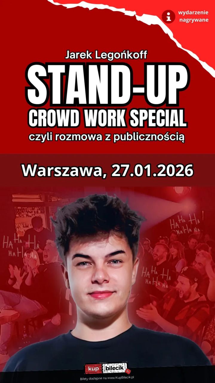 bilety: To show nigdy się nie powtórzy! Crowdwork to stand-up jakiego jeszcze nie widziałeś. To nie kolejny nudny monolog - to spektakl, który powstaje tu i teraz, a komik improwizuje na podstawie tego, co mówi publiczność. Każdy, kto widział Jarka w akcji, wie, jak szalenie zabawna jest jego improwizacja. Najlepsze jest to, że Ty też możesz stać się jej częścią i zostać gwiazdą wieczoru. A może nie tylko wieczoru, bo nagrania z rozmów Jarka zdobywają setki tysięcy wyświetleń w internecie. Stand-up: Jarek Legońkoff artyści: Jarek LegońkoffJarek Legońkoff to jeden z najciekawszych komików młodego pokolenia - łączy charyzmę, błyskotliwość i trafność obserwacji. Laureat kilkunastu ogólnopolskich konkursów stand-upowych - w tym Bitwy Komików, Zapasów Komediowych, Open Mic Battle i prestiżowego festiwalu SZPAK - systematycznie buduje swoją pozycję na polskiej scenie komediowej. Jego pierwszy solowy program, Wino i masło, przekroczył 100 tysięcy wyświetleń i został nominowany do tytułu Stand-upowego Debiutu Roku 2024 według portalu Standupedia. Publiczność mogła go też zobaczyć w internetowych formatach komediowych: Masz minutę i Zero presji. Na żywo - jeszcze lepszy niż w Internecie. Jego występy są dopracowane, pełne charakteru i autentycznie zabawne. Bilety do nabycia na: KupBilecik.pl |