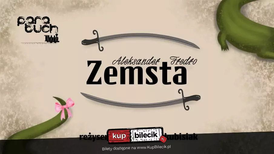 bilety: Utwór Aleksandra hr. Fredry od blisko dwustu lat bawi i pokazuje w dobitny sposób nasze narodowe wady. Tę arcykomedię, napisaną przepysznym wierszem, zaludniają wyraziście sportretowane typy ludzkie wciąż obecne wśród nas, choć w innym kostiumie. Zemsta - Aleksander Fredro artyści: Anna Winkler, Natalia Soszyńska, Artur Jasiński, Krzysztof Postrożny, Sebastian Lachocki i inniUtwór Aleksandra hr. Fredry od blisko dwustu lat bawi i pokazuje w dobitny sposób nasze narodowe wady. Tę arcykomedię, napisaną przepysznym wierszem, zaludniają wyraziście sportretowane typy ludzkie wciąż obecne wśród nas, choć w innym kostiumie. Bilety do nabycia na: KupBilecik.pl |