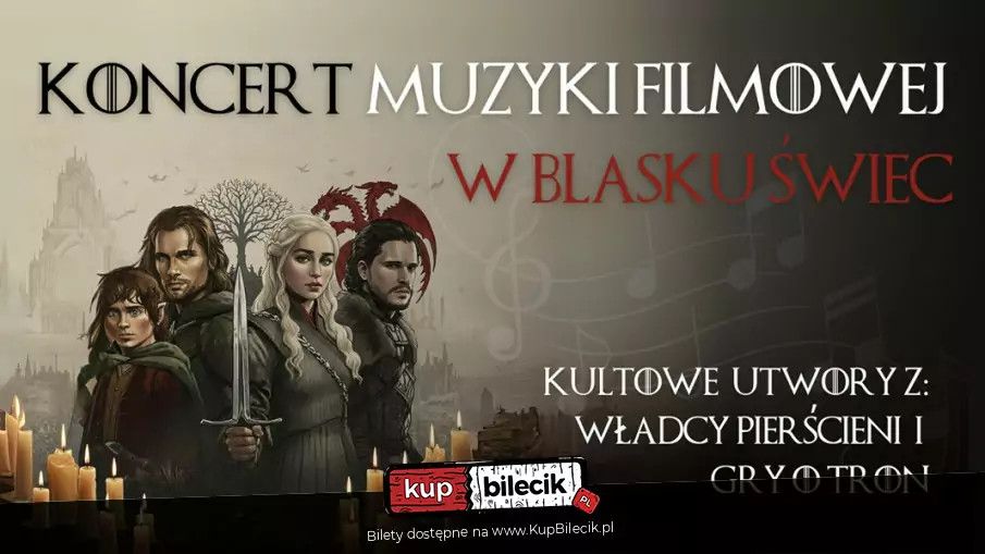 bilety: Cztery smyczki. Jeden niepowtarzalny wieczór. Niezliczone wspomnienia, które ożywają z każdą nutą. Muzyka z Władcy Pierścieni i Gry o Tron artyści: Różni artyściKwartet smyczkowy zabierze Cię tam, gdzie Jon i Daenerys walczyli o tron, gdzie Nocny Król maszerował na południe, gdzie Gandalf stawał twarzą w twarz z Balrogiem. Usłyszysz triumf, rozpacz, miłość i odwagę - wszystko to, co sprawiło, że te historie zagościły w naszych sercach na zawsze. The Rains of Castamere zabrzmi jeszcze bardziej przejmująco przy świecach. Concerning Hobbits przeniesie Cię prosto do Shire. Light of the Seven zmrozi krew w żyłach - tak jak wtedy, gdy Cersei kroczyła ku katedrze. Bilety do nabycia na: KupBilecik.pl |