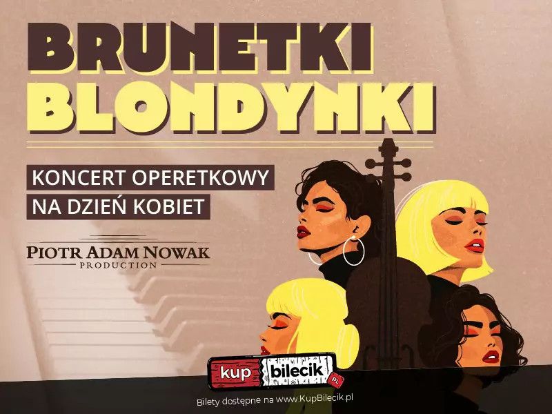 bilety: Z okazji Dnia Kobiet zapraszamy Państwa na wyjątkowy koncert pt. "Brunetki, blondynki", podczas którego zabrzmią najpiękniejsze melodie z klasycznych operetek oraz niezapomniane przeboje z repertuaru Jana Kiepury. Wieczór przeniesie publiczność w świat dawnego Wiednia, Budapesztu i Paryża -- do czasów, gdy operetka królowała na salonach, łącząc elegancję, humor, taniec i romantyzm. To właśnie operetka, nazywana "królową muzycznych scen", zachwyca lekkością, wdziękiem i melodyjnością, a jej arie i duety od ponad wieku wzruszają i bawią publiczność na całym świecie. W programie największe przeboje z takich dzieł jak: Księżniczka czardasza Imre Kálmána, Wesoła wdówka Franza Lehára, Hrabina Marica, Zemsta nietoperza Johanna Straussa, a także piosenki z repertuaru Jana Kiepury, m.in. słynne "Brunetki, blondynki", "Usta milczą, dusza śpiewa" czy "Ninon, ach uśmiechnij się". W wykonaniu znakomitych artystów - sopranu i tenora przy akompaniamencie fortepianu - usłyszą Państwo arie, duety i pieśni, które przywrócą blask złotej epoce operetki -- tej, która łączyła muzykę, miłość i radość życia. Koncert "Brunetki, blondynki" to nie tylko muzyczne spotkanie z klasyką, ale również wyjątkowy prezent dla wszystkich Pań -- pełen emocji, uśmiechu i niezapomnianych melodii. Serdecznie zapraszamy na ten wyjątkowy wieczór w duchu dawnych operetkowych tradycji! Bilety do nabycia na: KupBilecik.plBrunetki, blondynki – najpiękniejsze arie i duety operetkowe artyści: Różni artyściZ okazji Dnia Kobiet zapraszamy Państwa na wyjątkowy koncert pt. „Brunetki, blondynki”, podczas którego zabrzmią najpiękniejsze melodie z klasycznych operetek oraz niezapomniane przeboje z repertuaru Jana Kiepury. Bilety do nabycia na: KupBilecik.pl |