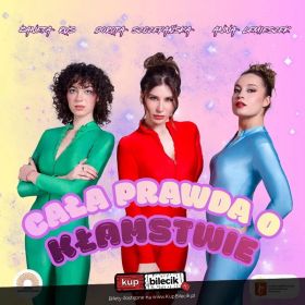 bilety: Było wiele prawd o kłamstwie - my znamy całą prawdę. Przedstawi ją kolektyw trzech charyzmatycznych aktorek. W dynamicznej, kabaretowo-teatralnej formie, bohaterki przeprowadzą widzów przez świat codziennych półprawd, starannie pielęgnowanych masek i wyrafinowanych manipulacji. Jeśli chcecie wiedzieć jak zręcznie zarządzać rzeczywistością - w życiu prywatnym, zawodowym i czasem również na scenie - zobaczcie "Całą prawdę o kłamstwie". Cała prawda o kłamstwie artyści: Anna Lemieszek, Żaneta Rus, Dorota SzczepańskaByło wiele prawd o kłamstwie - my znamy całą prawdę. Przedstawi ją kolektyw trzech charyzmatycznych aktorek. W dynamicznej, kabaretowo-teatralnej formie, bohaterki przeprowadzą widzów przez świat codziennych półprawd, starannie pielęgnowanych masek i wyrafinowanych manipulacji. Jeśli chcecie wiedzieć jak zręcznie zarządzać rzeczywistością - w życiu prywatnym, zawodowym i czasem również na scenie - zobaczcie “Całą prawdę o kłamstwie”. Bilety do nabycia na: KupBilecik.pl |